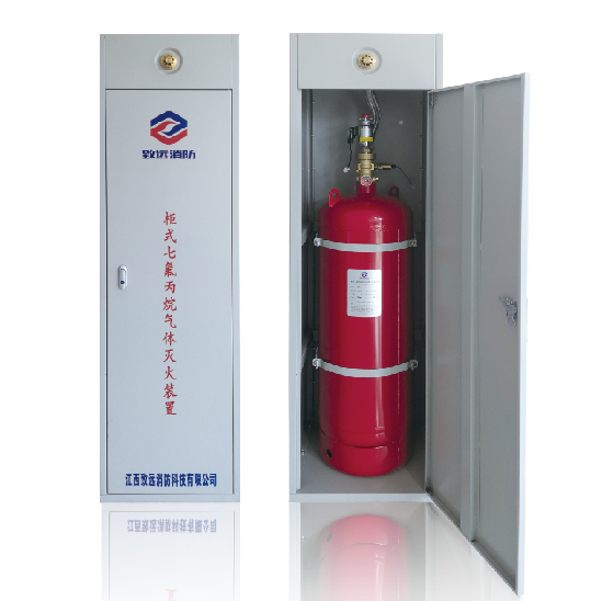 柜式七氟丙烷氣體滅火裝置又稱無管網(wǎng)七氟丙烷裝置,是一種預置的以全淹沒方式滅火、獨立成套、可以移動的滅火設備,具有安裝輕巧方便、外形美觀、滅火劑無管網(wǎng)損失、滅火效能高、速度快等特點。柜式七氟丙烷氣體滅火裝置可以與消防控制中心相連接,由火災報警滅火控制器驅(qū)動實施自動滅火,該裝置不需要設置專用的設備間,整套滅火設備均在保護區(qū)內(nèi)。火災發(fā)生時,本裝置可直接向保護區(qū)內(nèi)自動噴灑藥劑,方便快捷,一個保護區(qū)設置一套系統(tǒng),幾臺裝置連用可以保護較大區(qū)域。