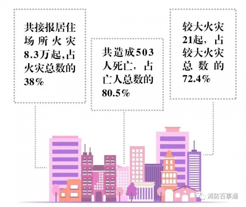 共接報(bào)居住場(chǎng)所火災(zāi)8.3萬(wàn)起,共造成503人死亡,雖然起數(shù)占火災(zāi)總數(shù)的38%,但亡人數(shù)占總數(shù)的80.5%;其中,較大火災(zāi)21起,占較大火災(zāi)總數(shù)的72.4%。