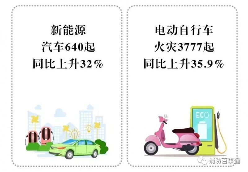 共接報(bào)各類交通工具火災(zāi)1.9萬(wàn)起,同比去年上升8.8%;其中,新能源汽車640起,同比上升32%;電動(dòng)自行車火災(zāi)3777起,同比上升35.9%,均高于交通工具火災(zāi)的平均增幅。