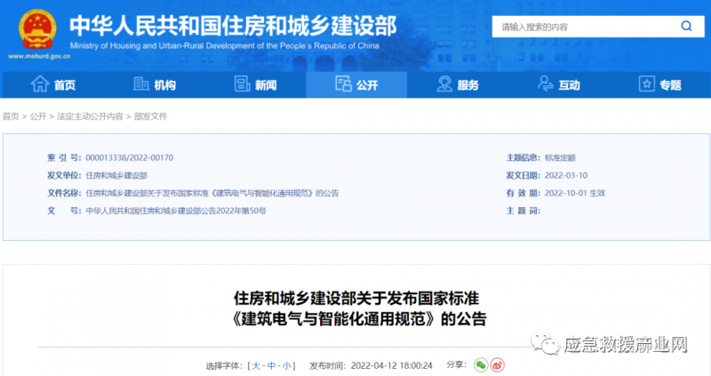 近日,住建部發(fā)布通知,批準《建筑電氣與智能化通用規(guī)范》為國家標準,編號為GB 55024-2022,自2022年10月1日起實施。規(guī)范為強制性工程建設規(guī)范,全部條文必須嚴格執(zhí)行?,F(xiàn)行工程建設標準中有關(guān)規(guī)定與本規(guī)范不一致的,以本規(guī)范的規(guī)定為準。