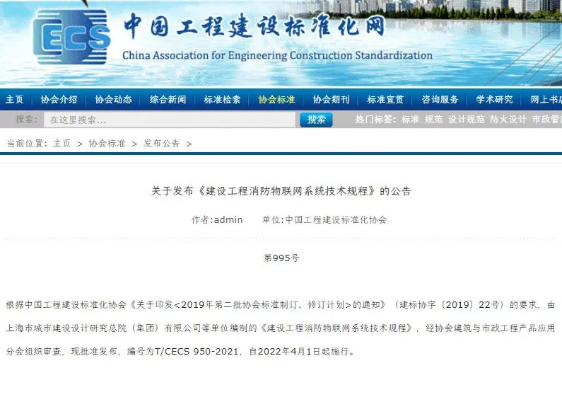?尼特參編的《建設(shè)工程消防物聯(lián)網(wǎng)技術(shù)規(guī)程》已正式實(shí)施!