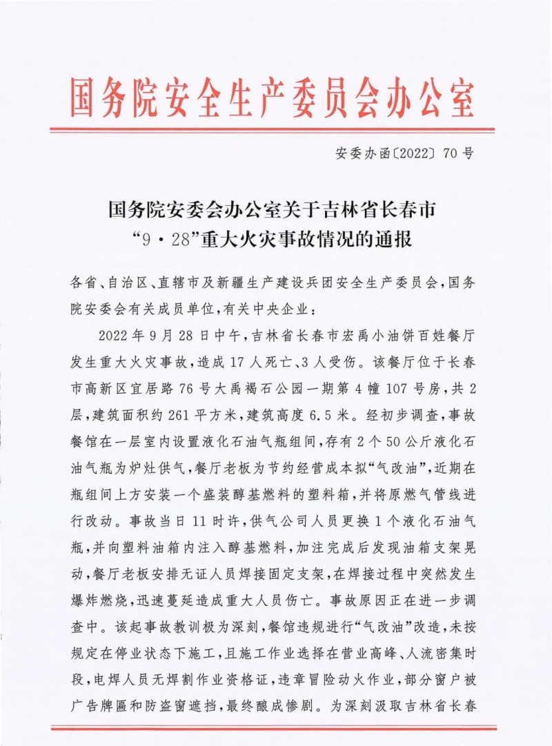 事故原因正在進(jìn)一步調(diào)查中。該起事故教訓(xùn)極為深刻,餐館違規(guī)進(jìn)行“氣改油”改造, 未按規(guī)定在停業(yè)狀態(tài)下施工,且施工作業(yè)選擇在營業(yè)高峰、人流密集時(shí)段,電焊人員無焊割作業(yè)資格證,違章冒險(xiǎn)動火作業(yè),部分窗戶被廣告牌匾和防盜窗遮擋,最終釀成慘劇。