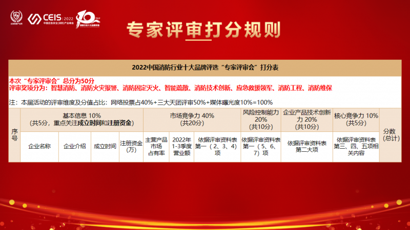 評審正式開始,孔凱麗對本屆“CEIS2022暨中國消防行業(yè)十大品牌評選活動的評選流程、獎項設(shè)置以及評審方式、打分規(guī)則進行了說明。