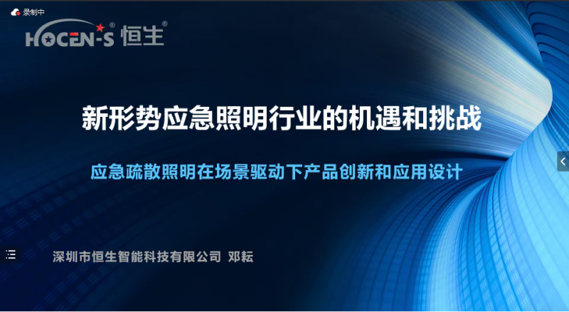 深圳市恒生智能科技有限公司董事長鄧耘以《新形勢應(yīng)急照明行業(yè)的機遇和挑戰(zhàn)——應(yīng)急疏散照明在場景驅(qū)動下產(chǎn)品創(chuàng)新和應(yīng)用設(shè)計》為主題,進行了精彩的分享。他分別從國家相關(guān)法規(guī)、產(chǎn)品設(shè)計選型、產(chǎn)品創(chuàng)新思路、產(chǎn)品場景應(yīng)用、應(yīng)急疏散引導(dǎo)系統(tǒng)未來、恒生智能新產(chǎn)品六個方面展開分享。