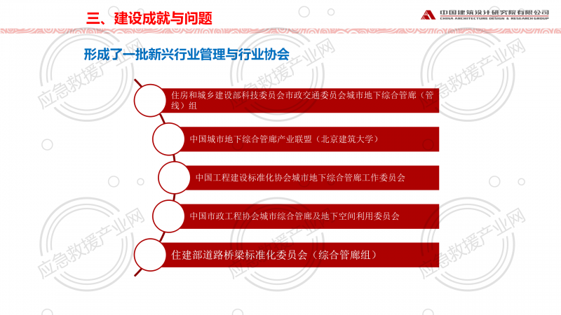 綜合管廊建設(shè)發(fā)展勢頭良好,政策指引下快速發(fā)展。他提到針對地上設(shè)施齊全、地下管線混亂、地面被反復(fù)“開膛破肚”的現(xiàn)象,國家加強(qiáng)城市綜合管廊行業(yè)的頂層設(shè)計(jì),各級政府配合出臺(tái)相關(guān)管理規(guī)定,科學(xué)合理規(guī)劃城市綜合管廊的發(fā)展,目前綜合管廊已建成較為完善的工程建設(shè)規(guī)范和標(biāo)準(zhǔn)體系,形成了一批新興行業(yè)管理與行業(yè)協(xié)會(huì)。工程建設(shè)和管理創(chuàng)新實(shí)踐領(lǐng)域取得諸多成果。