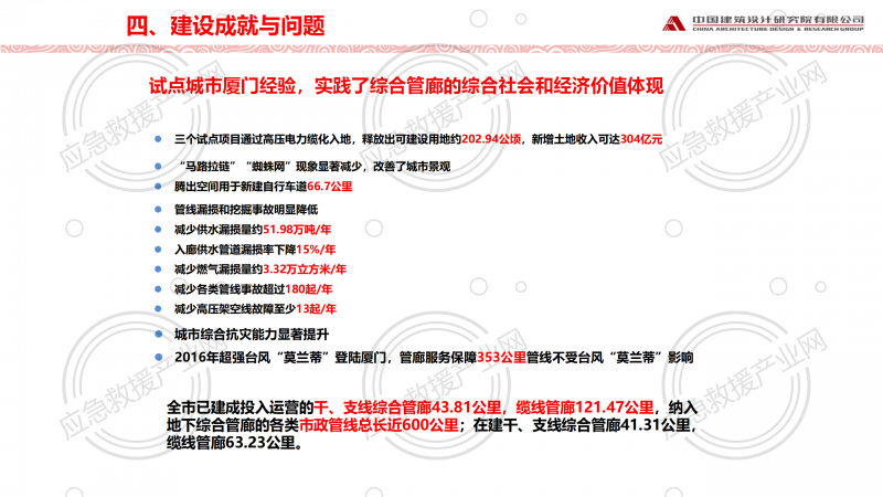 城市試點(diǎn),提供先進(jìn)經(jīng)驗(yàn)。他指出以廈門為首的優(yōu)秀試點(diǎn)城市經(jīng)驗(yàn),實(shí)現(xiàn)了管廊建設(shè)的社會(huì)和經(jīng)濟(jì)價(jià)值,高壓電纜入地化節(jié)省了可建設(shè)用地、減少了運(yùn)輸耗損、提高了城市抗震減災(zāi)能力。