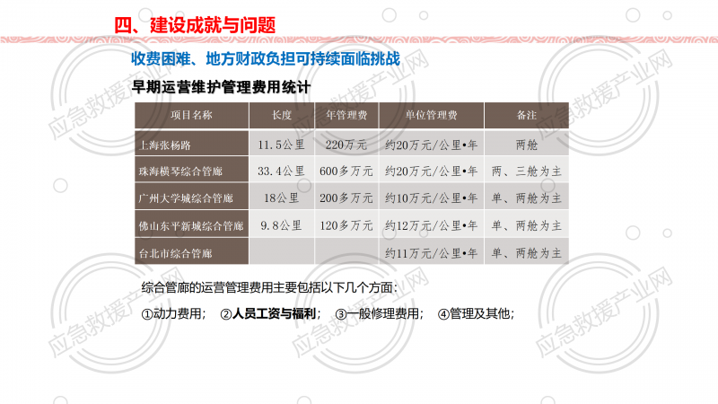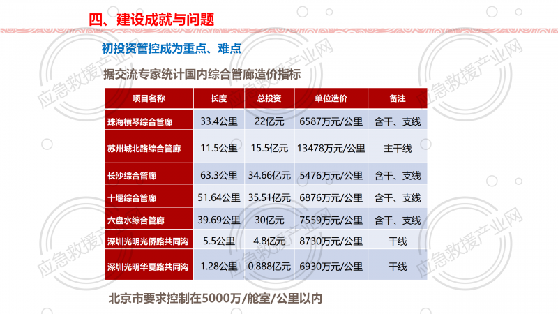 運(yùn)用新技術(shù)、提高效率、節(jié)省成本。他分析到城市地下綜合管廊建設(shè)面臨規(guī)劃不科學(xué)導(dǎo)致規(guī)劃折騰;投資建設(shè)成本過高、安全風(fēng)險(xiǎn)較大,導(dǎo)致投融資困難;初期運(yùn)營管理成本過高導(dǎo)致收費(fèi)困難。這需要結(jié)合5G、信息化、智能化、智慧化等數(shù)字技術(shù)提高效率,解決成本。