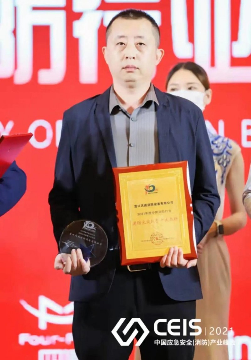 12月16日,由中國安全產(chǎn)業(yè)協(xié)會(huì)消防技術(shù)創(chuàng)新專委會(huì)、應(yīng)急救援產(chǎn)業(yè)網(wǎng)主辦的CEIS2021中國應(yīng)急安全(消防)產(chǎn)業(yè)峰會(huì)暨消防行業(yè)十大品牌頒獎(jiǎng)盛典在深圳圓滿召開。遼寧天成控股集團(tuán)有限公司榮獲“消防火災(zāi)報(bào)警十大品牌”獎(jiǎng)項(xiàng)。