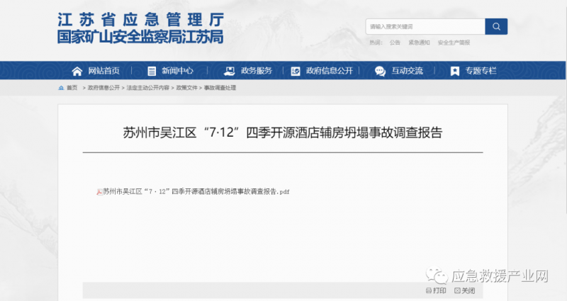 近日,江蘇省應急管理廳公布了《蘇州市吳江區(qū)“7·12”四季開源酒店輔房坍塌事故調(diào)查報告》。