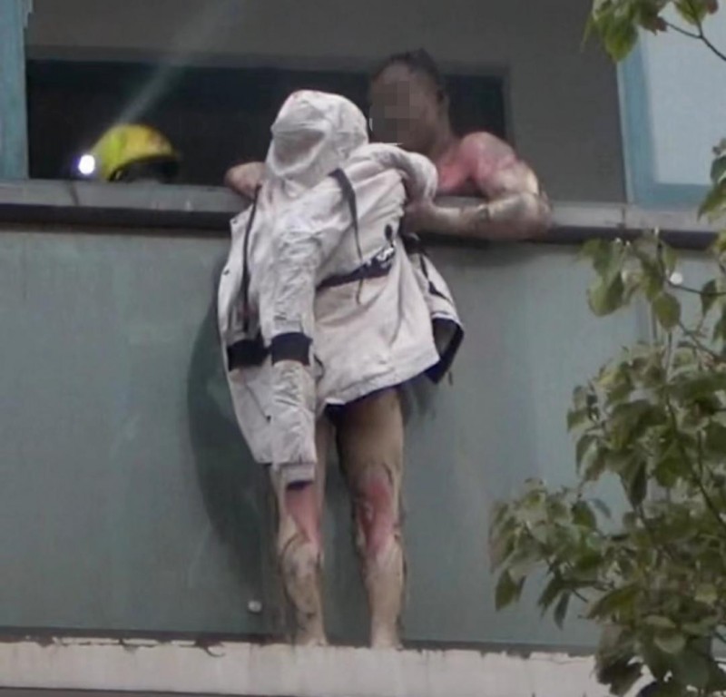 丈夫全身嚴(yán)重?zé)齻?br /> 把妻子放窗外避險(xiǎn)死死拉住