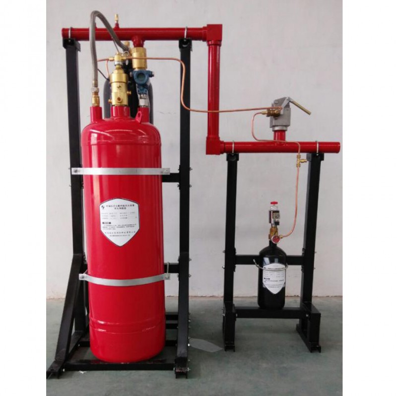 該系統(tǒng)工作原理比較簡單,只在火災(zāi)發(fā)生時報警控制盤發(fā)出指令,經(jīng)一段延時后打開電磁閥,釋放驅(qū)動氣體瓶組中的氮氣。啟動氣體通過啟動管路,打開動力驅(qū)動瓶組工作,動力驅(qū)動瓶組內(nèi)氣體推動滅火劑儲瓶內(nèi)的滅火劑。滅火劑經(jīng)連接軟管、液流單向閥進入集流管、輸送管網(wǎng)、噴嘴向保護區(qū)噴灑滅火劑,實施滅火。