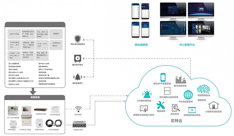 尼特消防九小場所智慧消防報(bào)警系統(tǒng)是通過物聯(lián)網(wǎng)硬件終端的部署實(shí)現(xiàn)各個(gè)點(diǎn)位的信息采集,人管管理、巡檢數(shù)據(jù)、設(shè)備設(shè)施相關(guān)數(shù)據(jù)的生成存儲(chǔ),構(gòu)建起消防大數(shù)據(jù)一體化架構(gòu),實(shí)現(xiàn)數(shù)據(jù)跨網(wǎng)交互,交通、地理位置信息等相關(guān)字號的共享應(yīng)用。云監(jiān)測系統(tǒng)可以全天候、全時(shí)段、全過程的對區(qū)域進(jìn)行監(jiān)管,實(shí)時(shí)分析數(shù)據(jù)變化,為單位固定消防設(shè)施正常運(yùn)轉(zhuǎn)提供依據(jù)。