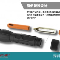 4、獨創(chuàng)銅片技術-使用時刺破氣瓶爆破銅片,釋放瞬時動力。氣體無需事先釋放好,刺破氣瓶和發(fā)射網(wǎng)同時進行,避免久不用會泄壓和密封圈疲勞問題。